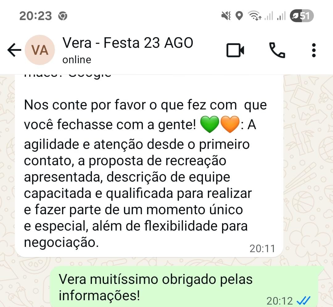 Para desenvolver um script realmente eficiente, realizei um benchmarking com mais de 10 empresas do segmento, analisando pontos fortes, linguagem e diferenciais do mercado. A partir disso, identifiquei o verdadeiro diferencial da marca, sua equipe fixa, constantemente treinada e construí um roteiro de vendas totalmente alinhado à identidade e propósito da empresa.