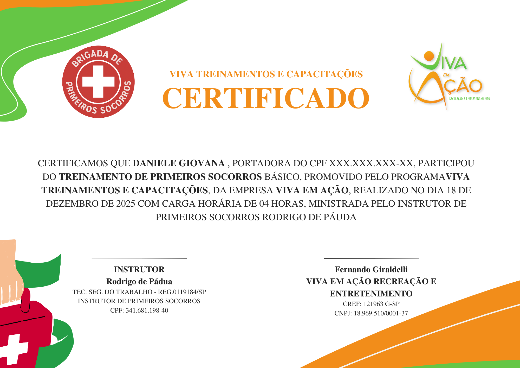 • Certificado de Primeiros Socorros, com layout profissional e institucional