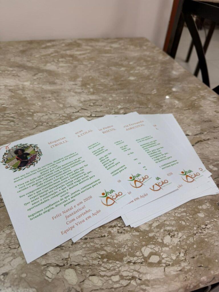 Desenvolvi todas as artes gráficas utilizadas na confraternização da Viva em Ação, cuidando de cada etapa do processo: conceito, copy e design, garantindo unidade visual, propósito e identidade em cada material.